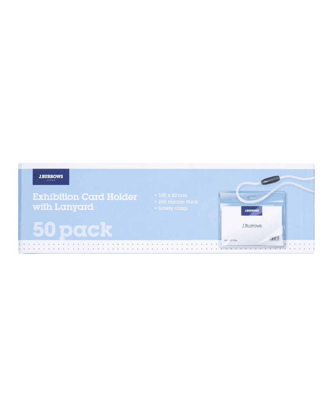 These J.Burrows Card Holders come with lanyards attached so you'll be able to slip your ID, security pass, public transport card or other essential item inside and carry it with ease. There are 50 matching card holders and lanyards included, making them perfect for use in your business, on school trips or at conferences and other events.