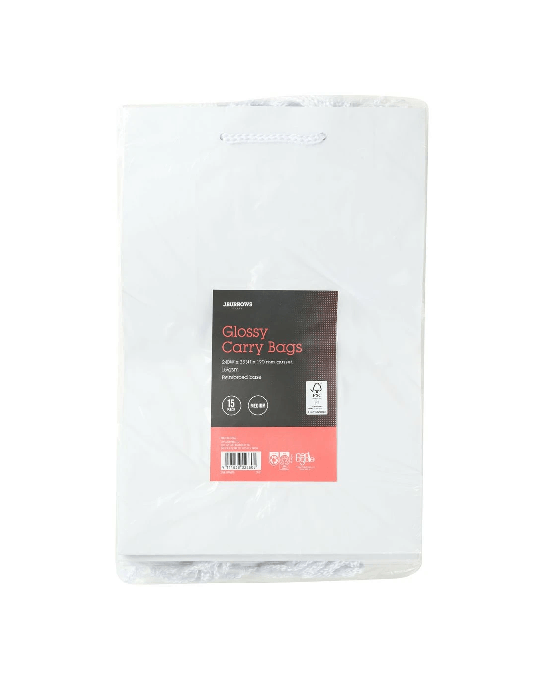 Sold by OfficeworksJ.Burrows Carry Bags Medium White Glossy 15 Pack