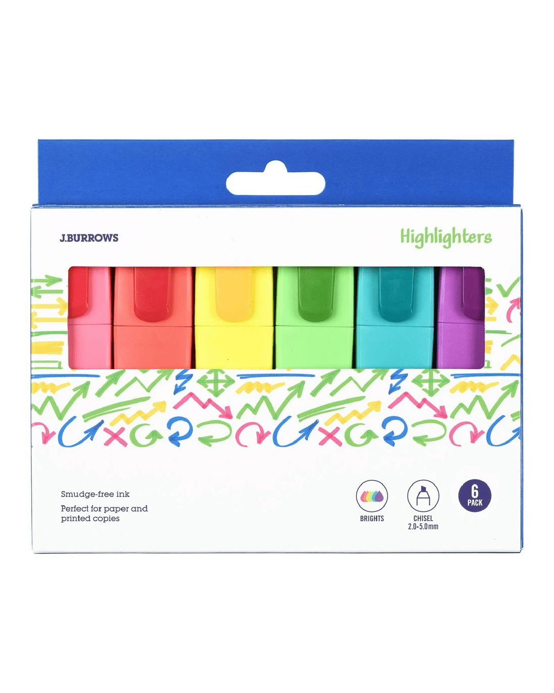 Sold by OfficeworksJ.Burrows Chisel Highlighters Brights 6 Pack