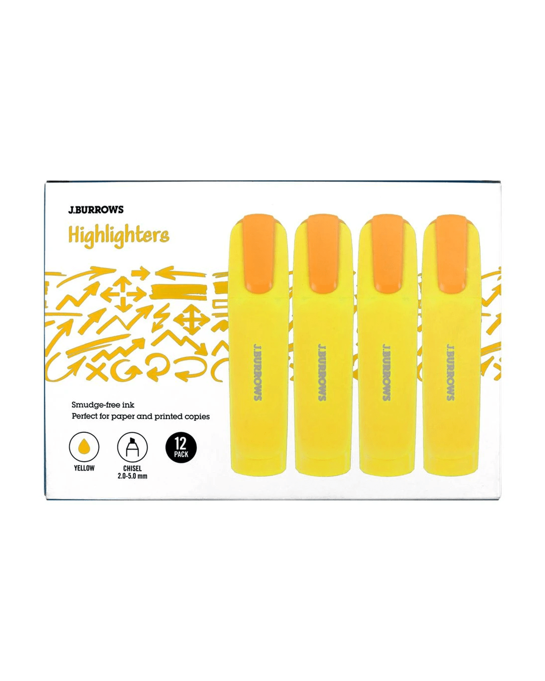 Sold by OfficeworksJ.Burrows Chisel Highlighters Yellow 12 Pack