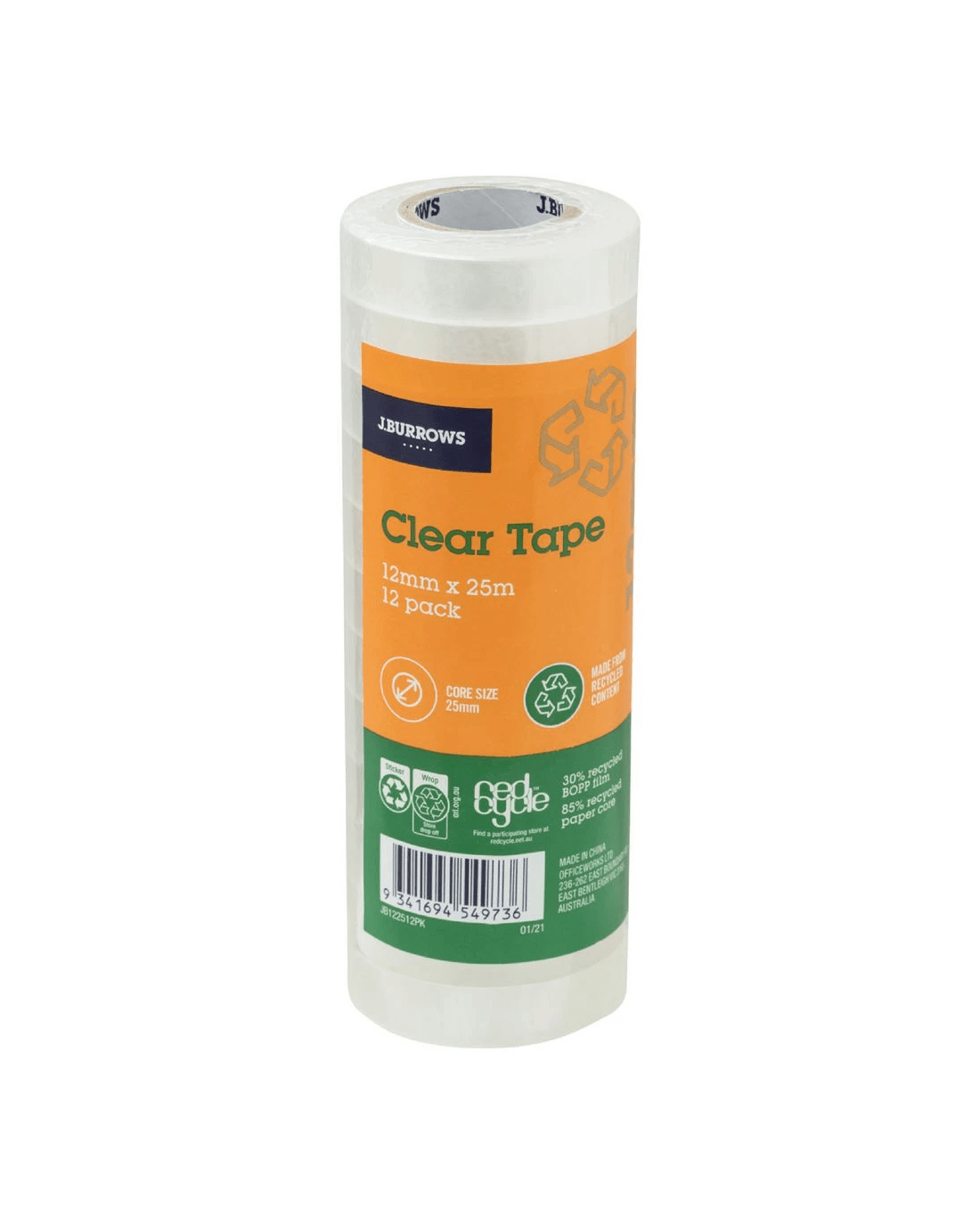 Sold by OfficeworksJ.Burrows Clear Tape Roll 12mmX25m 12 Pack