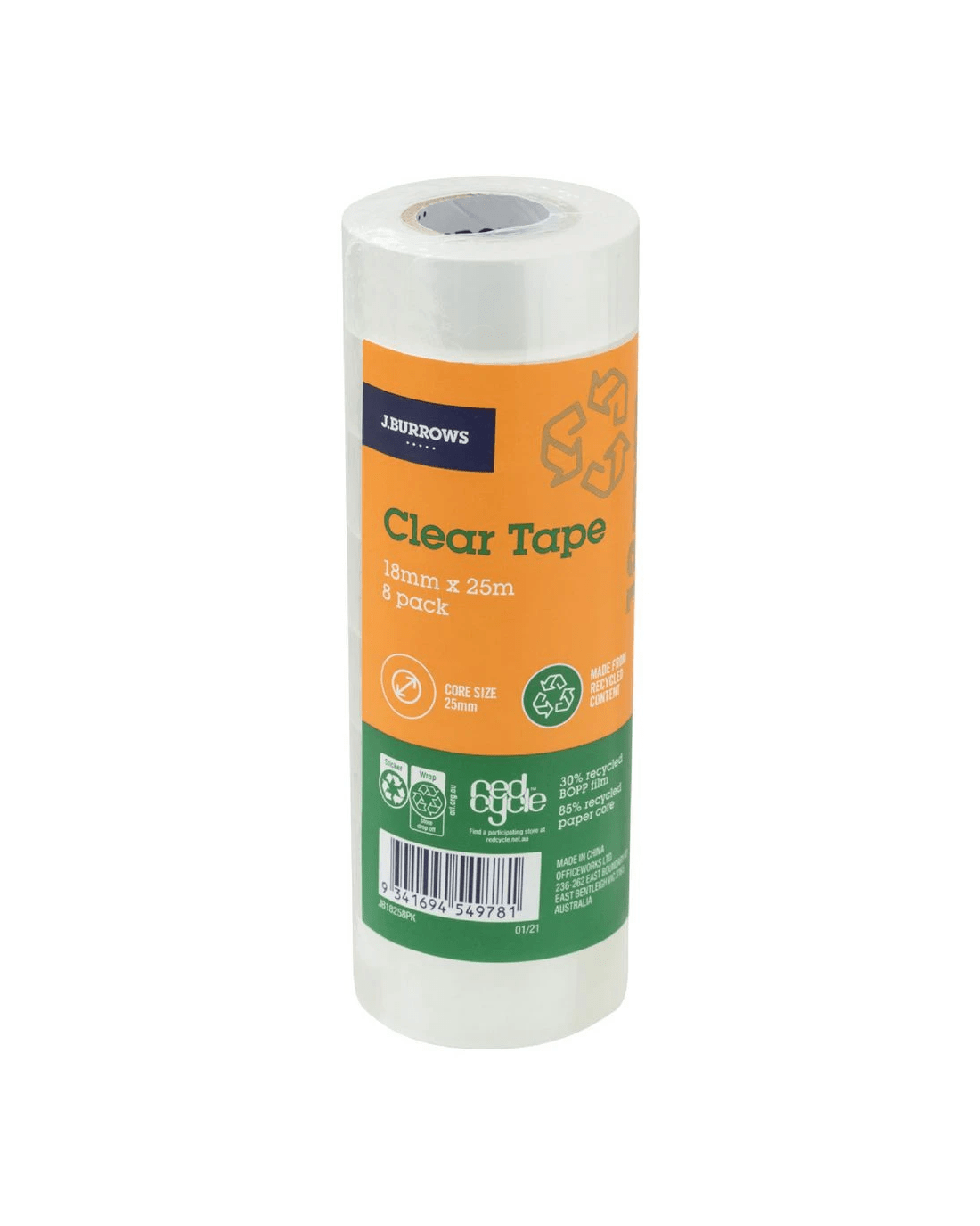 Sold by OfficeworksJ.Burrows Clear Tape Roll 18mmX25m 8 Pack