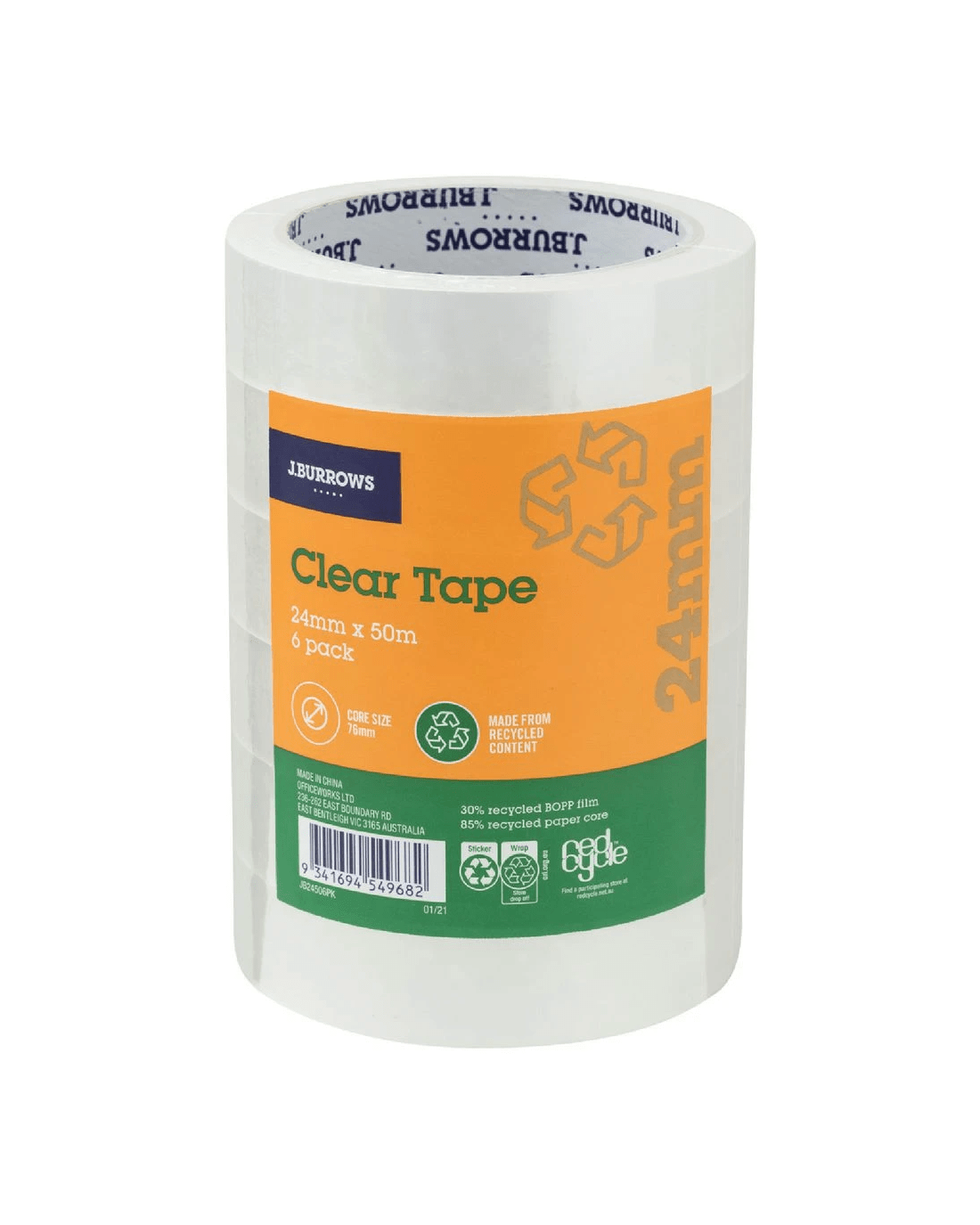 J.Burrows Clear Tape Roll 24mmX50m 6 Pack
