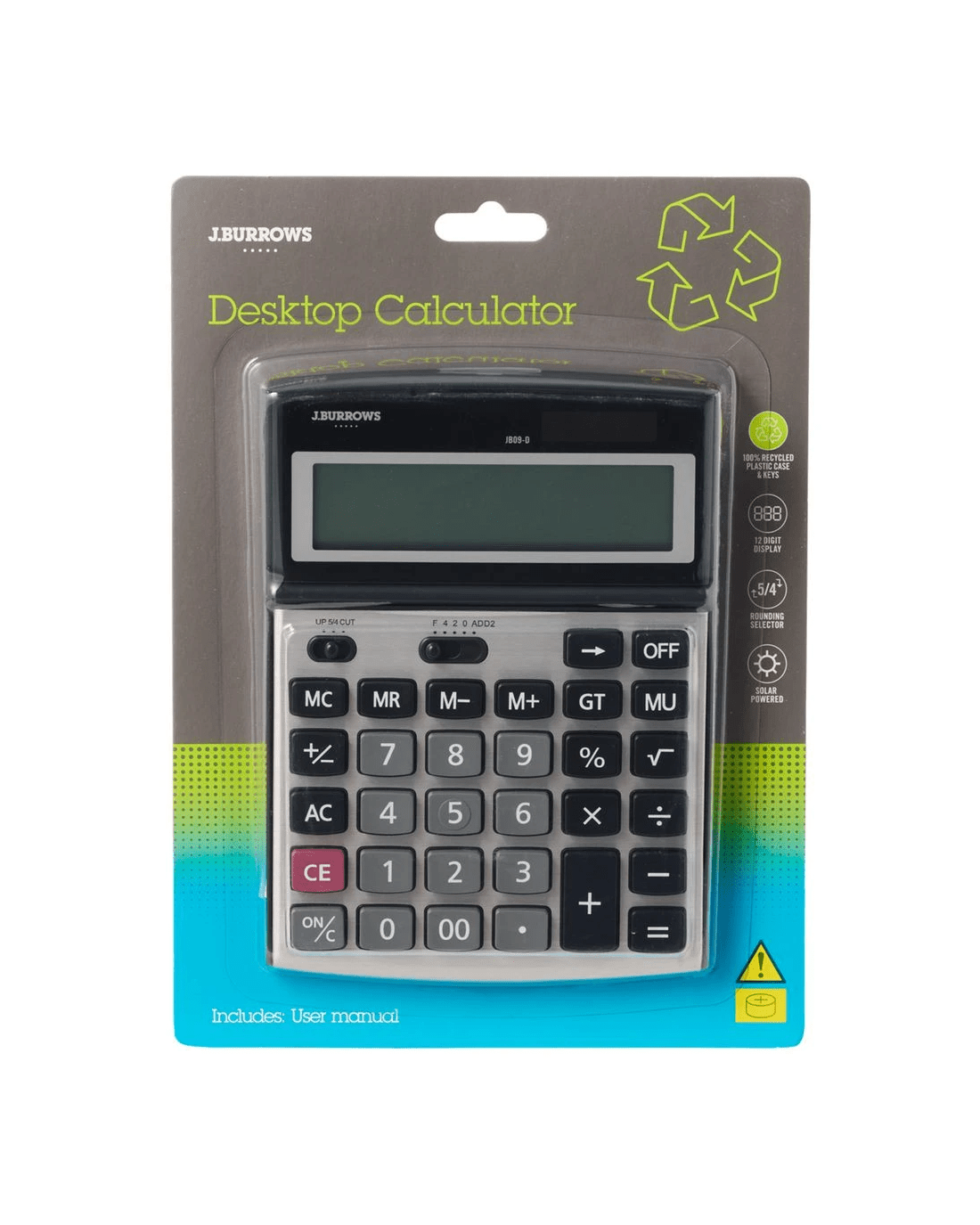 J.Burrows Desktop 12 Digit Calculator Black/Silver