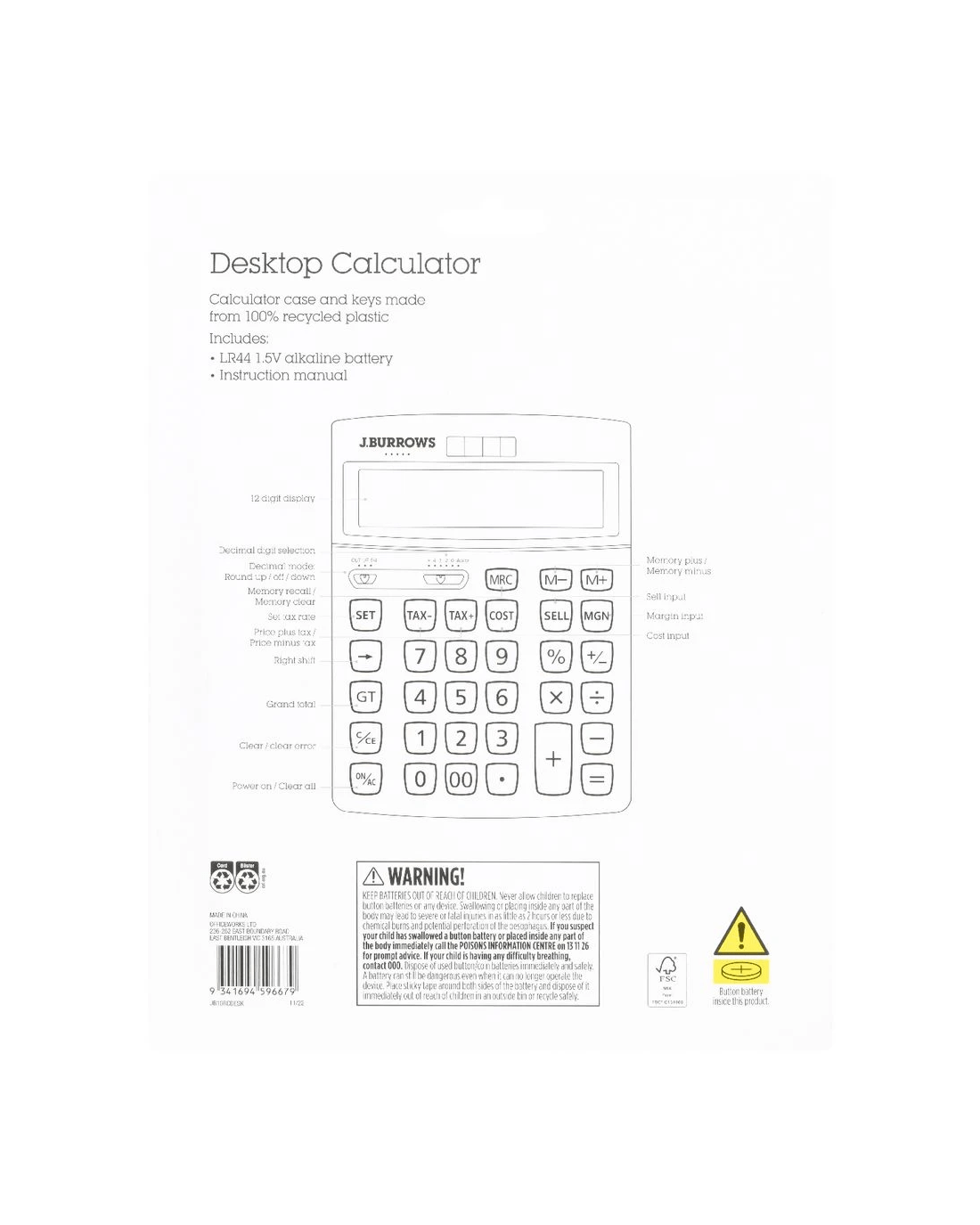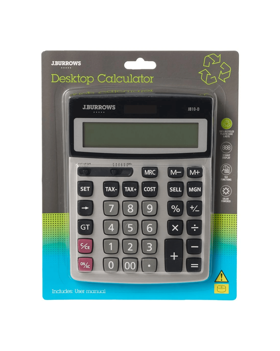 This J.Burrows Desktop Tax Calculator is great for making basic tax calculations. It can show up to 12 digits on the screen at a time and comes with an included battery for your convenience.