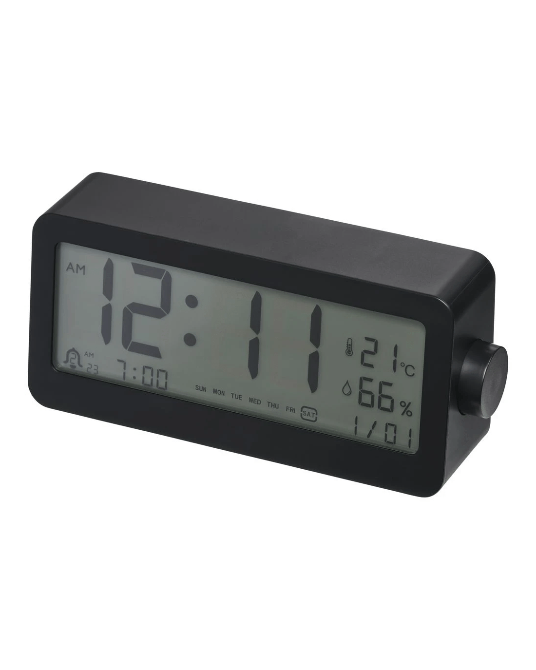 This J.Burrows Digital Desk Clock lets you keep an eye on the time and wake up ready for the day. It has a professional black design that fits in anywhere, and includes temperature, date and humidity displays for easy reference.