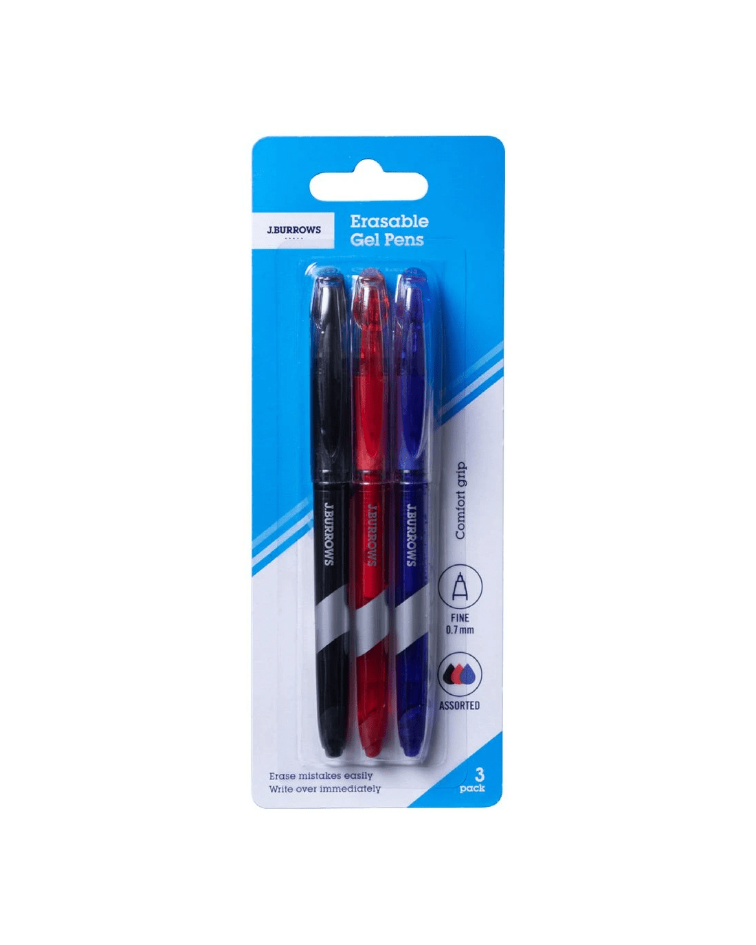 Sold by OfficeworksJ.Burrows Erasable Gel Pens 0.7mm Assorted 3 Pack