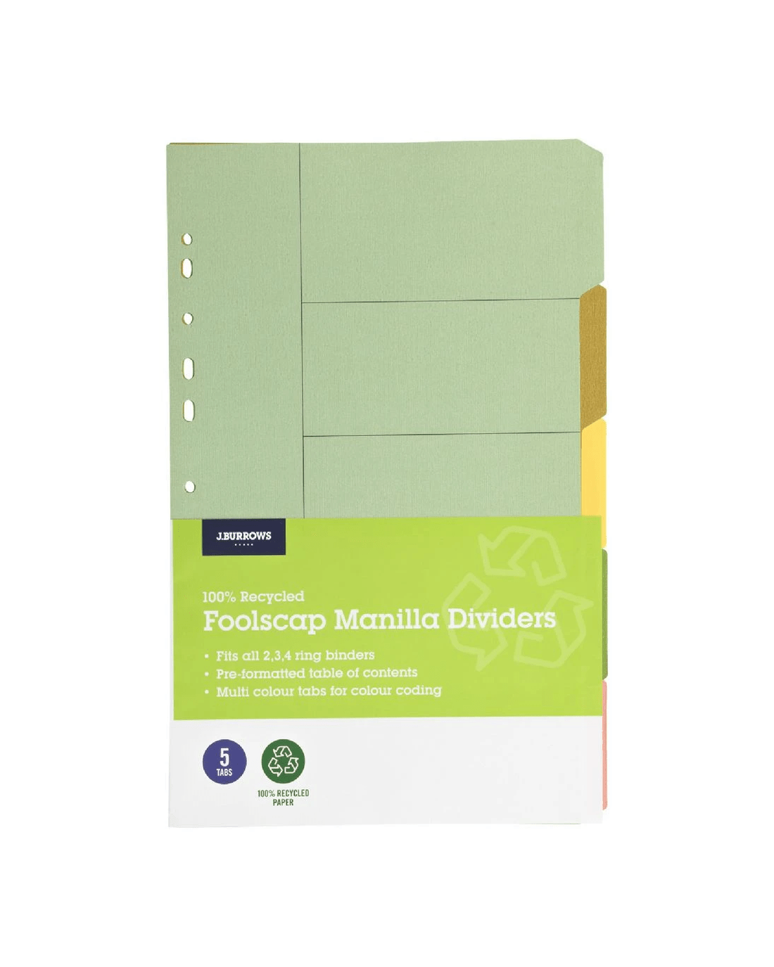 J.Burrows Foolscap 5 Tab Dividers Pastel