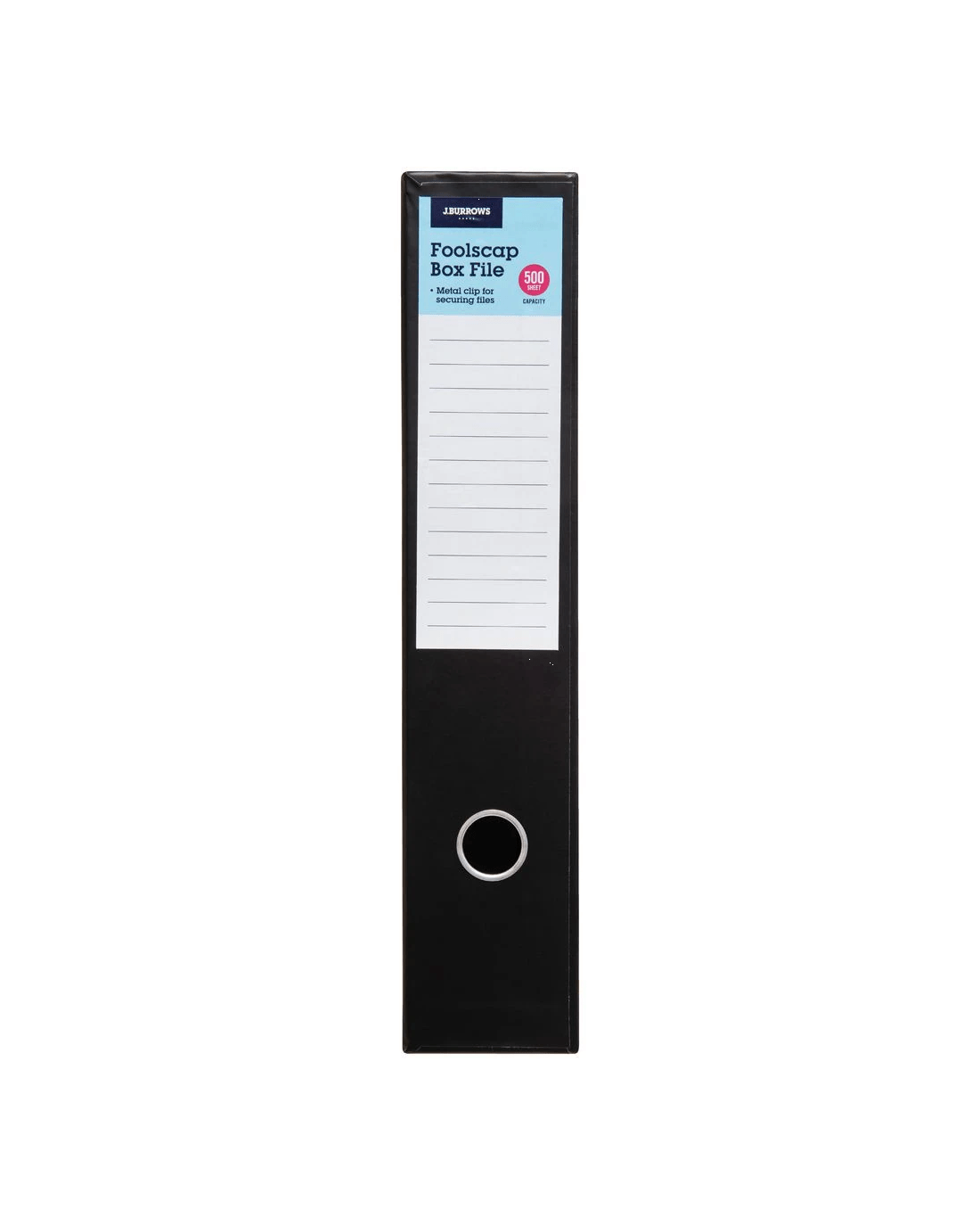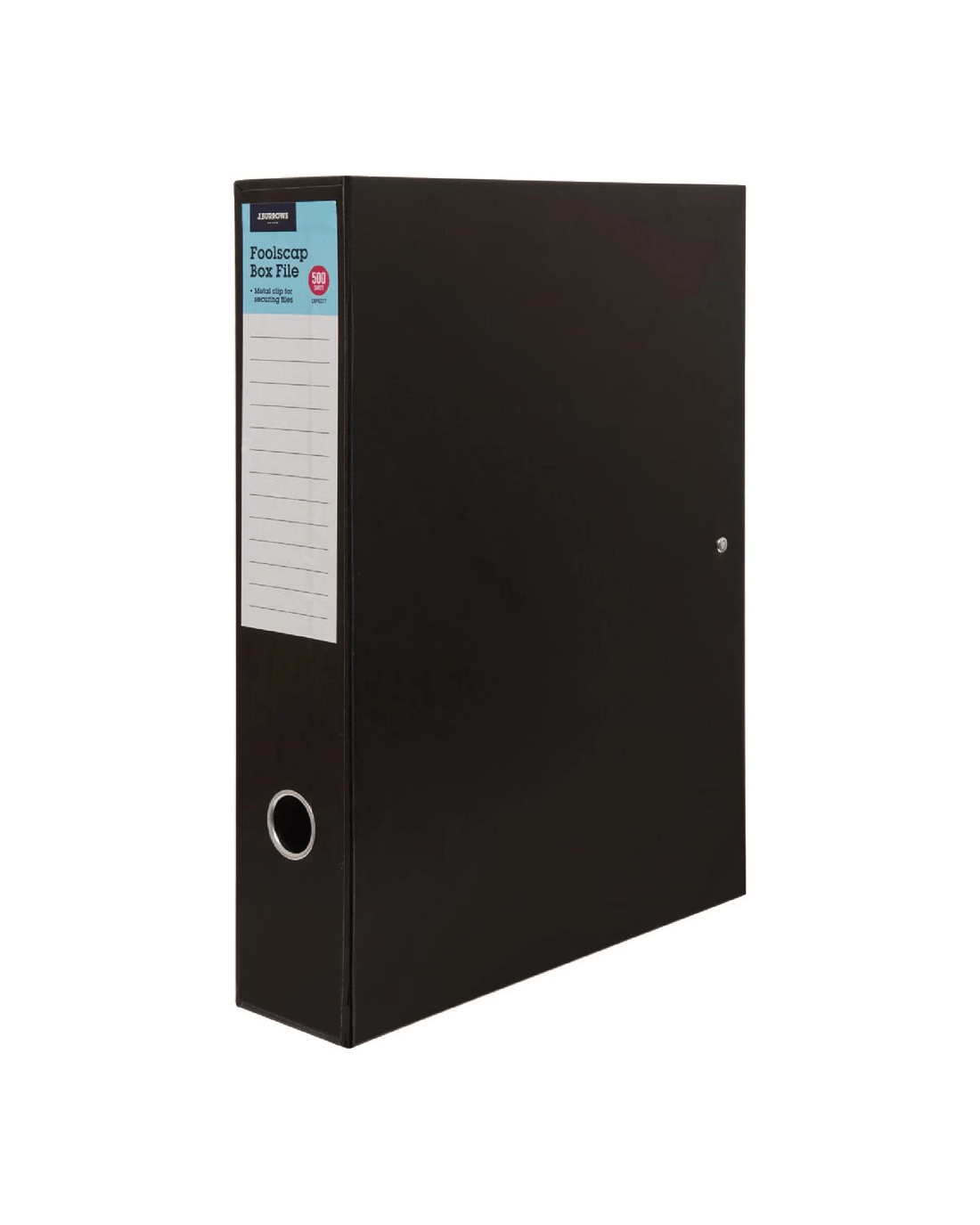The J.Burrows Foolscap Box File is ideal for keeping your files neat and tidy. It can store up to 500 documents, with a quick clip clamp keeping them secure and easily accessible.