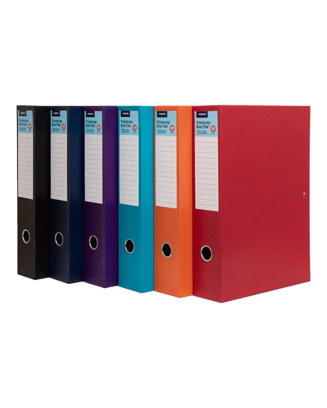 The J.Burrows Foolscap Box File is ideal for keeping your files neat and tidy. It can store up to 500 documents, with a quick clip clamp keeping them secure and easily accessible.