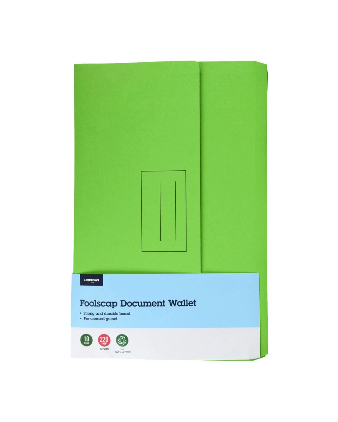 J.Burrows Foolscap Document Wallet Lime 10 Pack