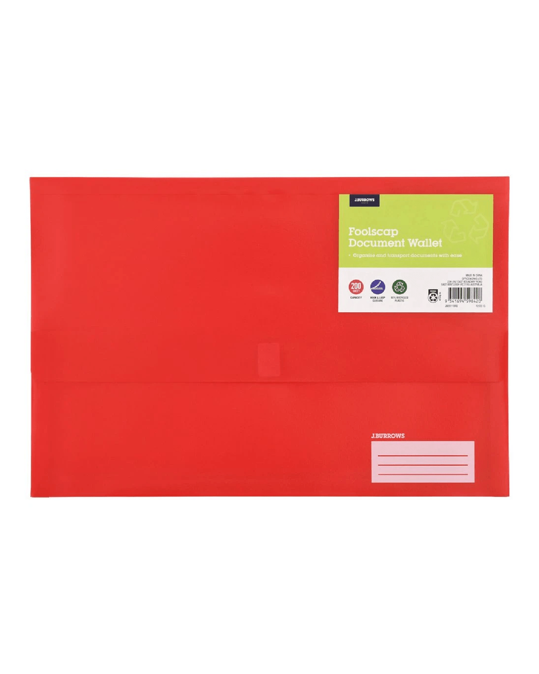 Sold by OfficeworksJ.Burrows Foolscap Document Wallet Red
