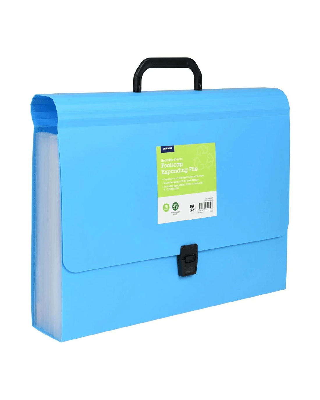 This J.Burrows Recycled Foolscap Expanding File is perfect for storing, organising, and transporting your documents. It has a buckle closure to keep the papers inside secure.