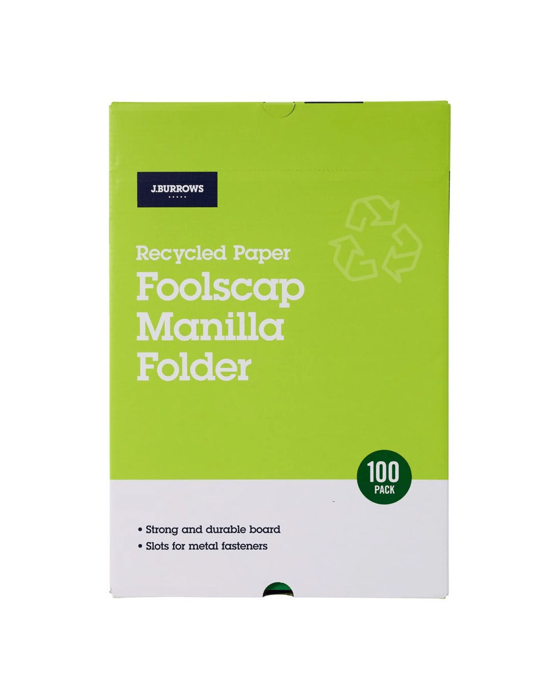 J.Burrows Foolscap Manila Folder Green 100 Pack