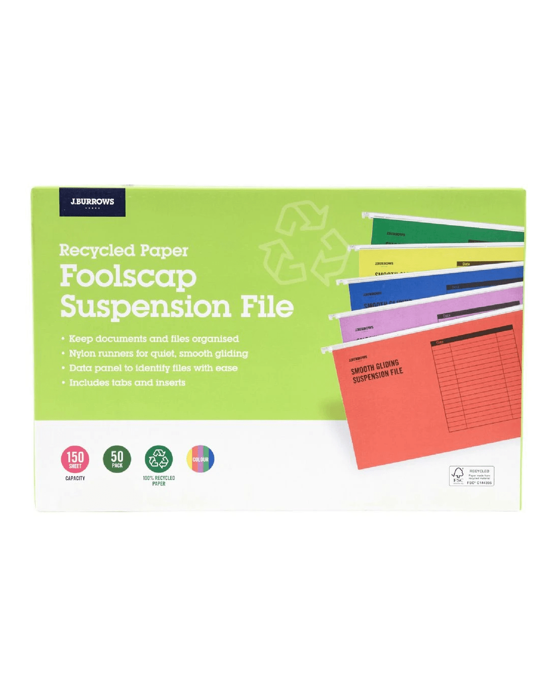 These J.Burrows Foolscap Suspension Files will help you to organise your important documents. The nylon runners ensure a smooth gliding action so you can find the right file with ease.