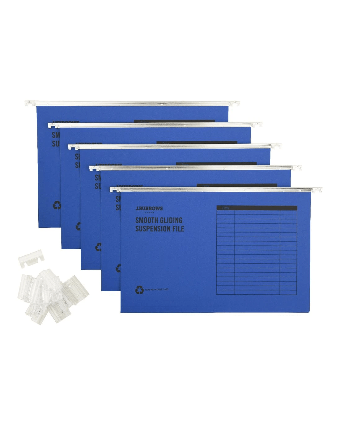 These J.Burrows Foolscap Suspension Files will help you to organise your important documents. The nylon runners ensure a smooth gliding action so you can find the right file with ease.