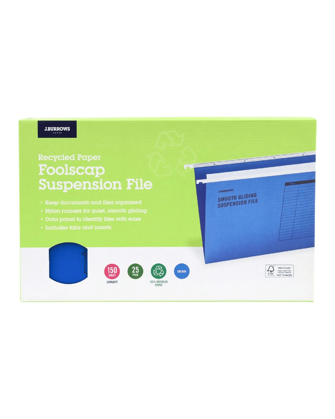 These J.Burrows Foolscap Suspension Files will help you to organise your important documents. The nylon runners ensure a smooth gliding action so you can find the right file with ease.