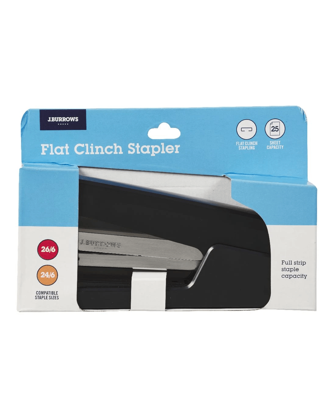 The J.Burrows Full Strip Flat Clinch Stapler is ideal for attaching documents together. It can bind up to 25 sheets together at a time and has a plastic and metal design for durability.