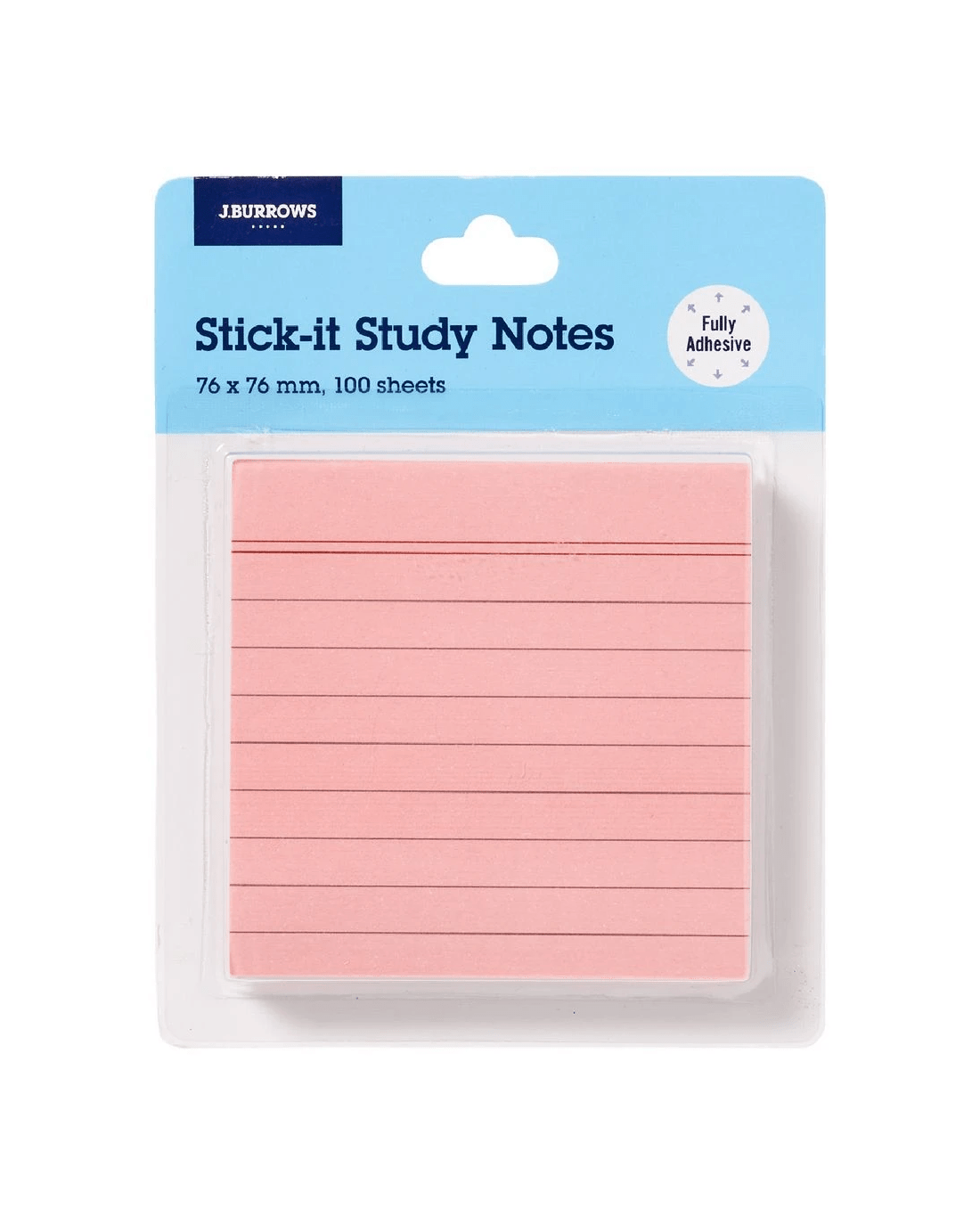Sold by OfficeworksJ.Burrows Fully Adhesive Notes 76x76mm Pink