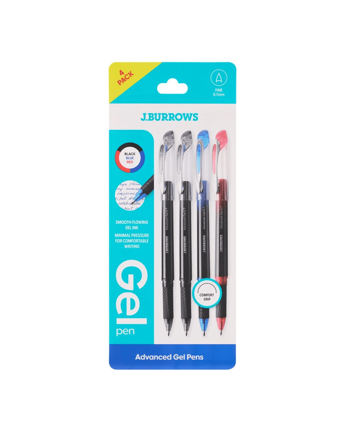 J.Burrows Gel Pen 0.7mm Assorted 4 Pack