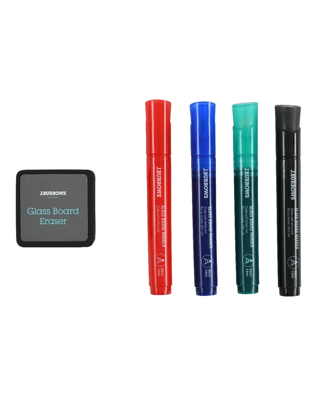 Sold by OfficeworksJ.Burrows Glass Board Markers & Eraser 5 Pack