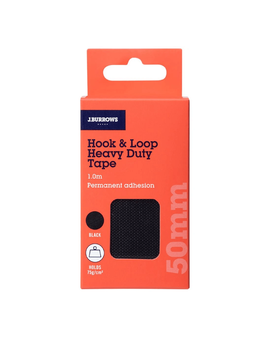J.Burrows Heavy Duty Hook & Loop Tape 50mm x 1m Black
