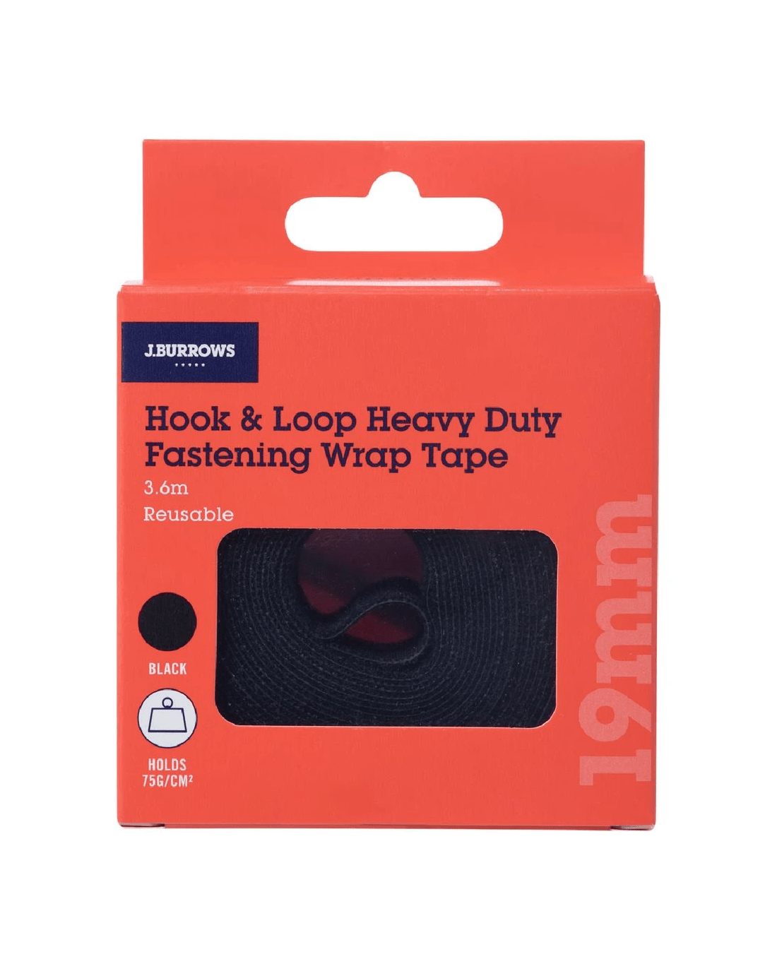 Sold by OfficeworksJ.Burrows Hook & Loop Wrap Tape 19mm x 3.6m Black