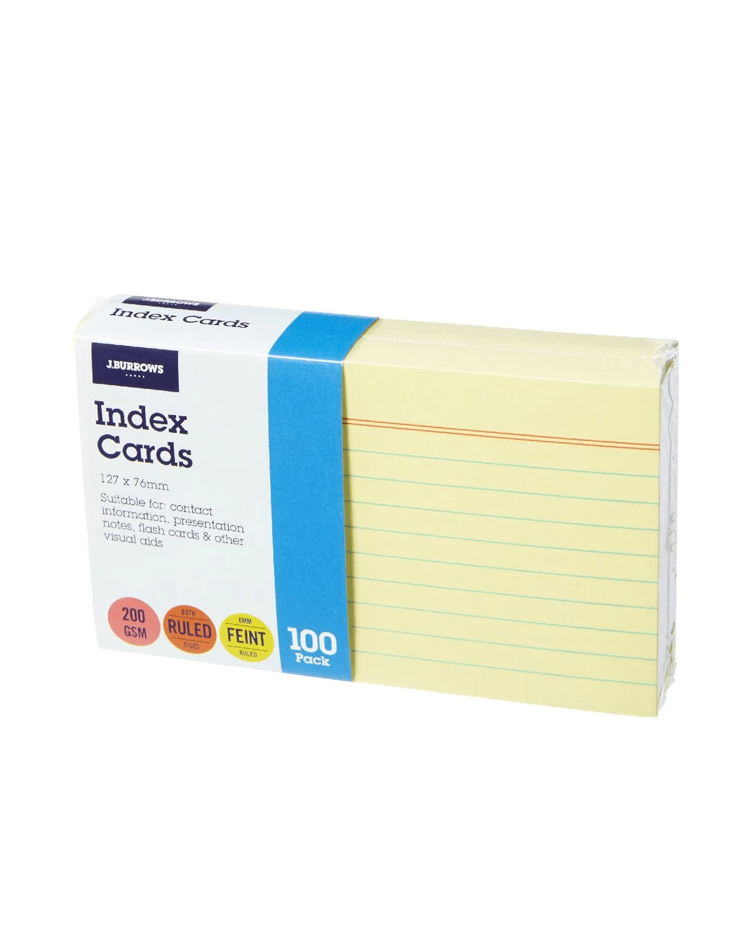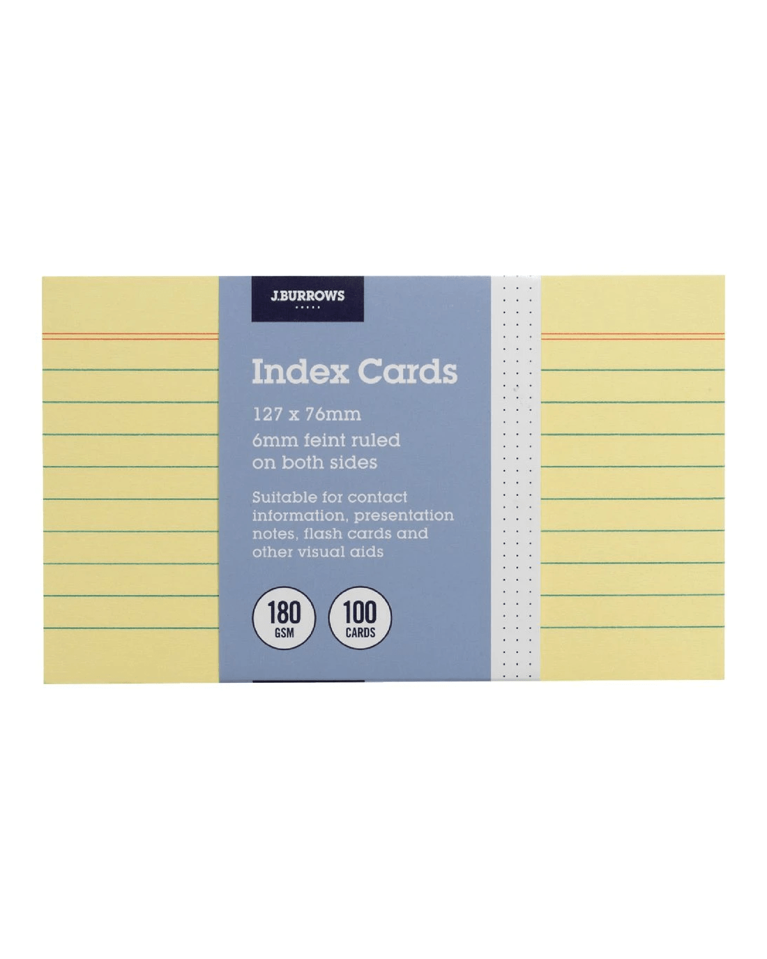 J.Burrows Index Cards are perfect for jotting down study notes, writing out your recipes, storing contact details and more. Each card has 6 mm pre-ruled lines on both sides, which will help you write neatly and keep your notes in order.