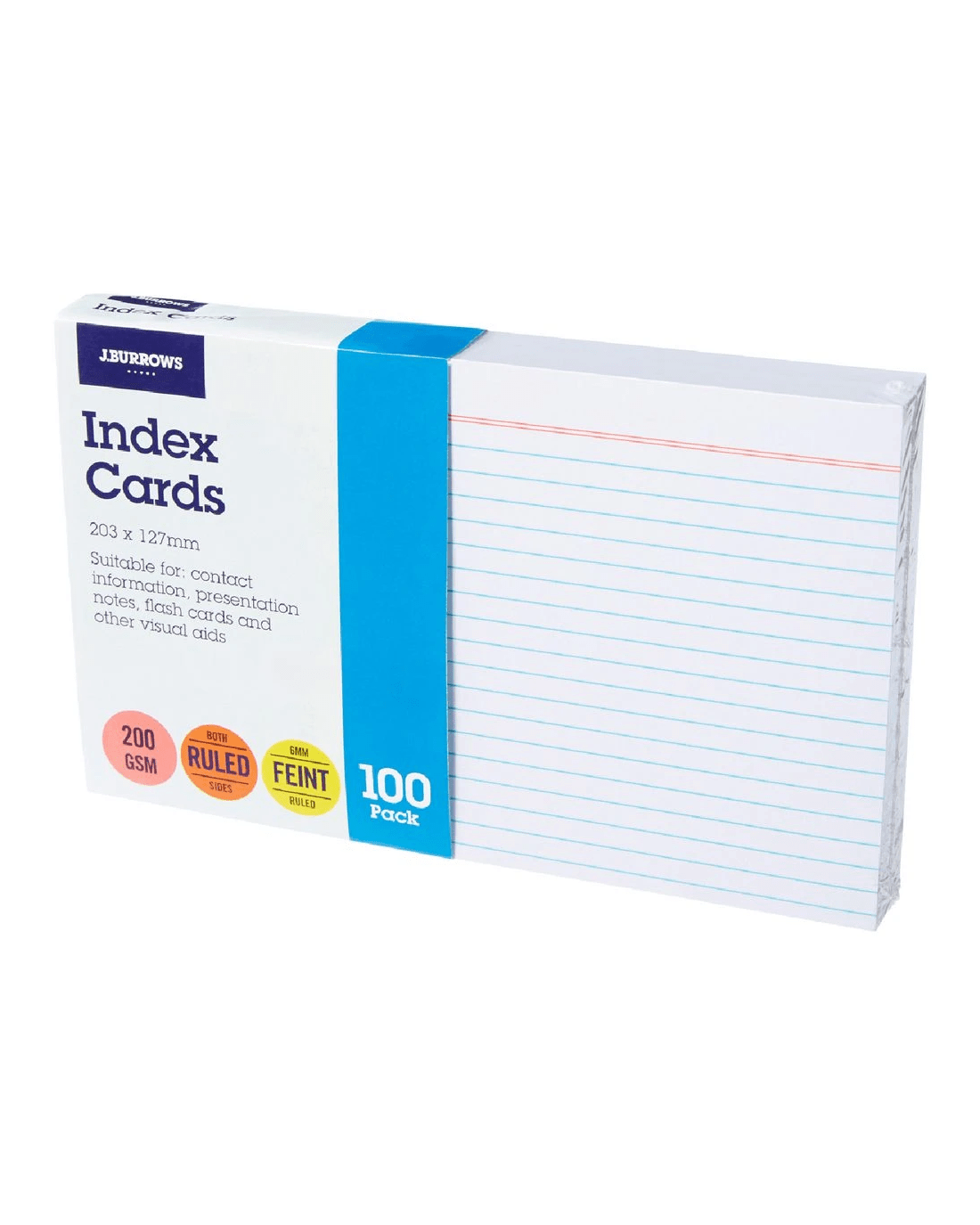 J.Burrows Index Cards are perfect for jotting down study notes, writing out your recipes, storing contact details and more. Each card has 6 mm pre-ruled lines on both sides, which will help you write neatly and keep your notes in order.