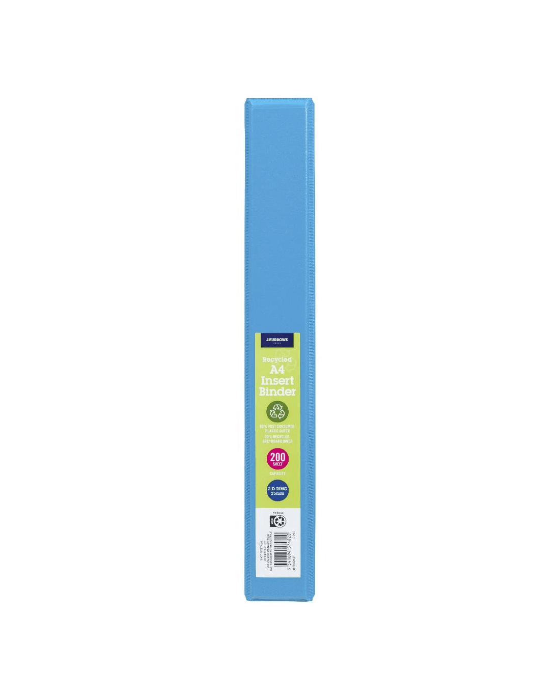 Sold by OfficeworksJ.Burrows Insert Binder A4 2 D-Ring 25mm Light Blue