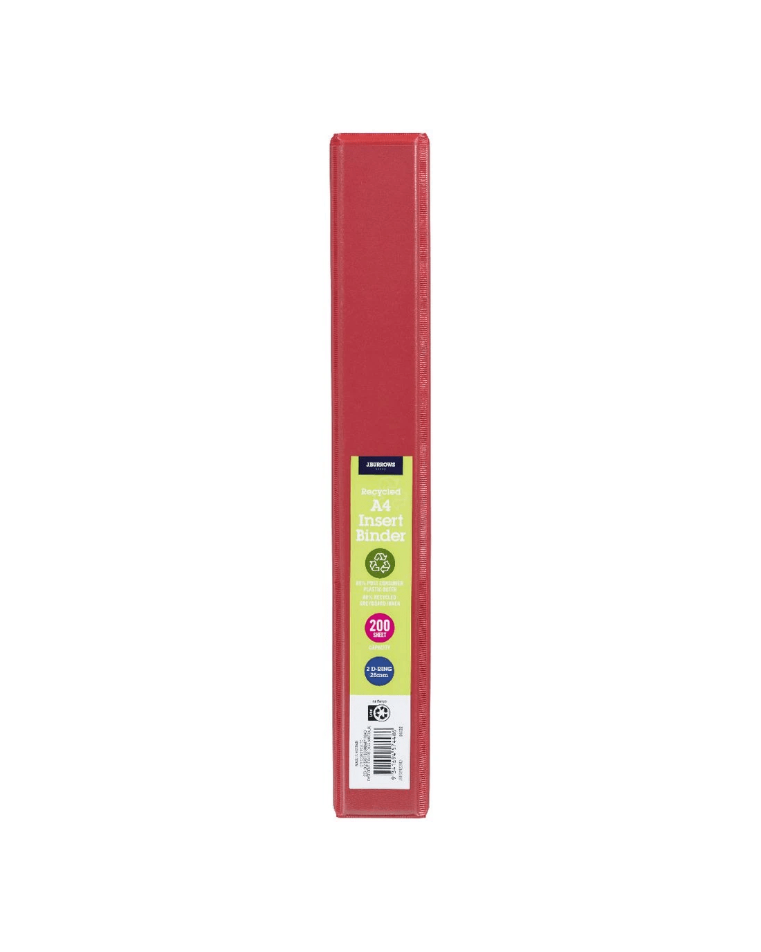 Sold by OfficeworksJ.Burrows Insert Binder A4 2 D-Ring 25mm Red