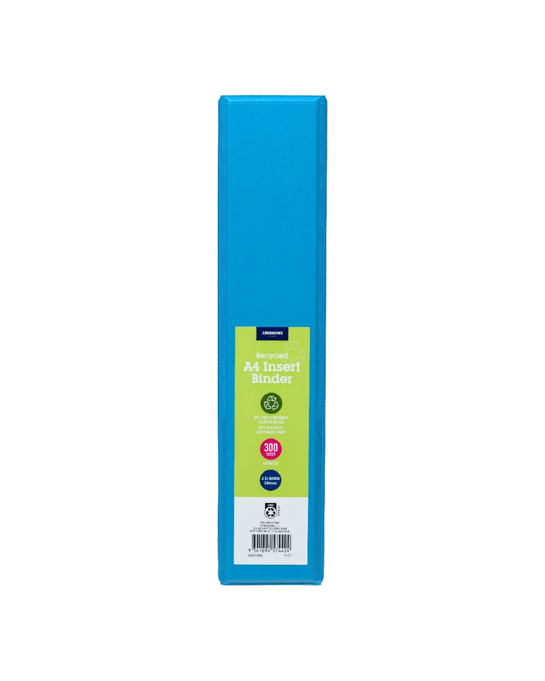 Sold by OfficeworksJ.Burrows Insert Binder A4 3 D-Ring 38mm Blue