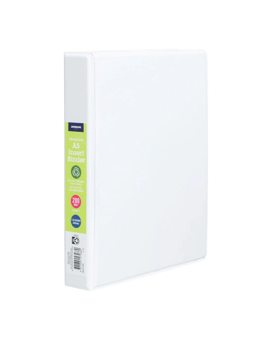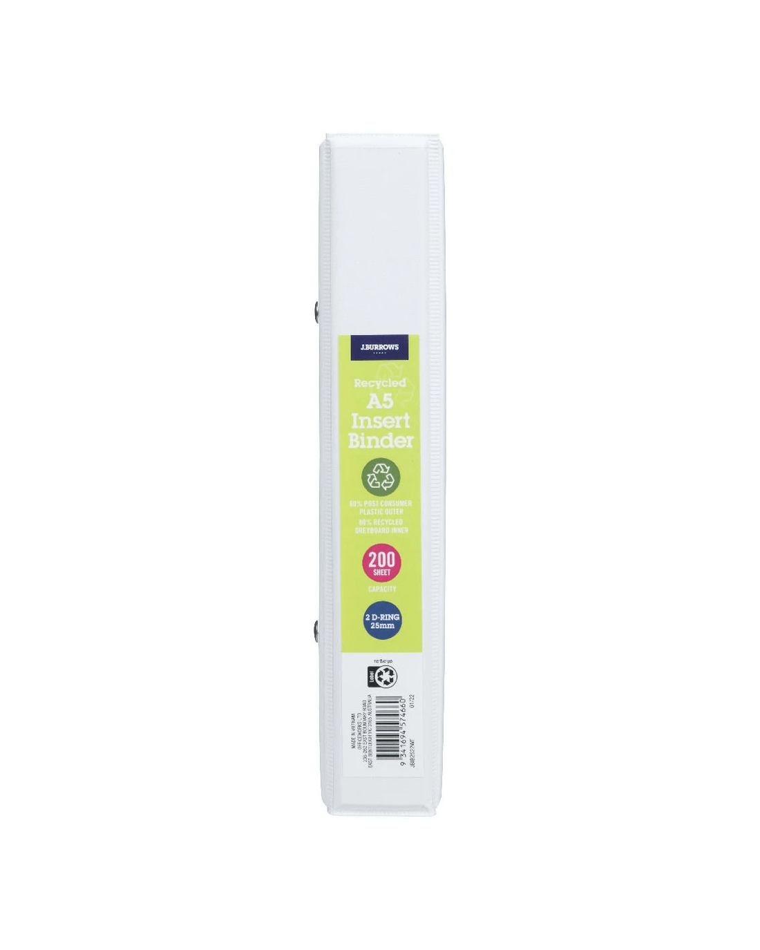 Sold by OfficeworksJ.Burrows Insert Binder A5 2 D-Ring 25mm White