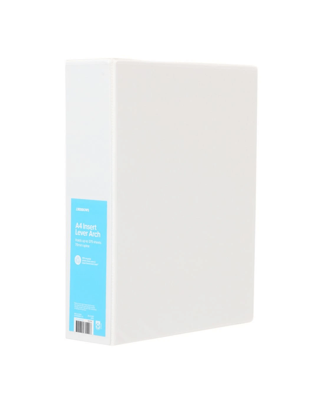 Sold by OfficeworksJ.Burrows Insert Half Lever Arch A4 Binder 70mm White