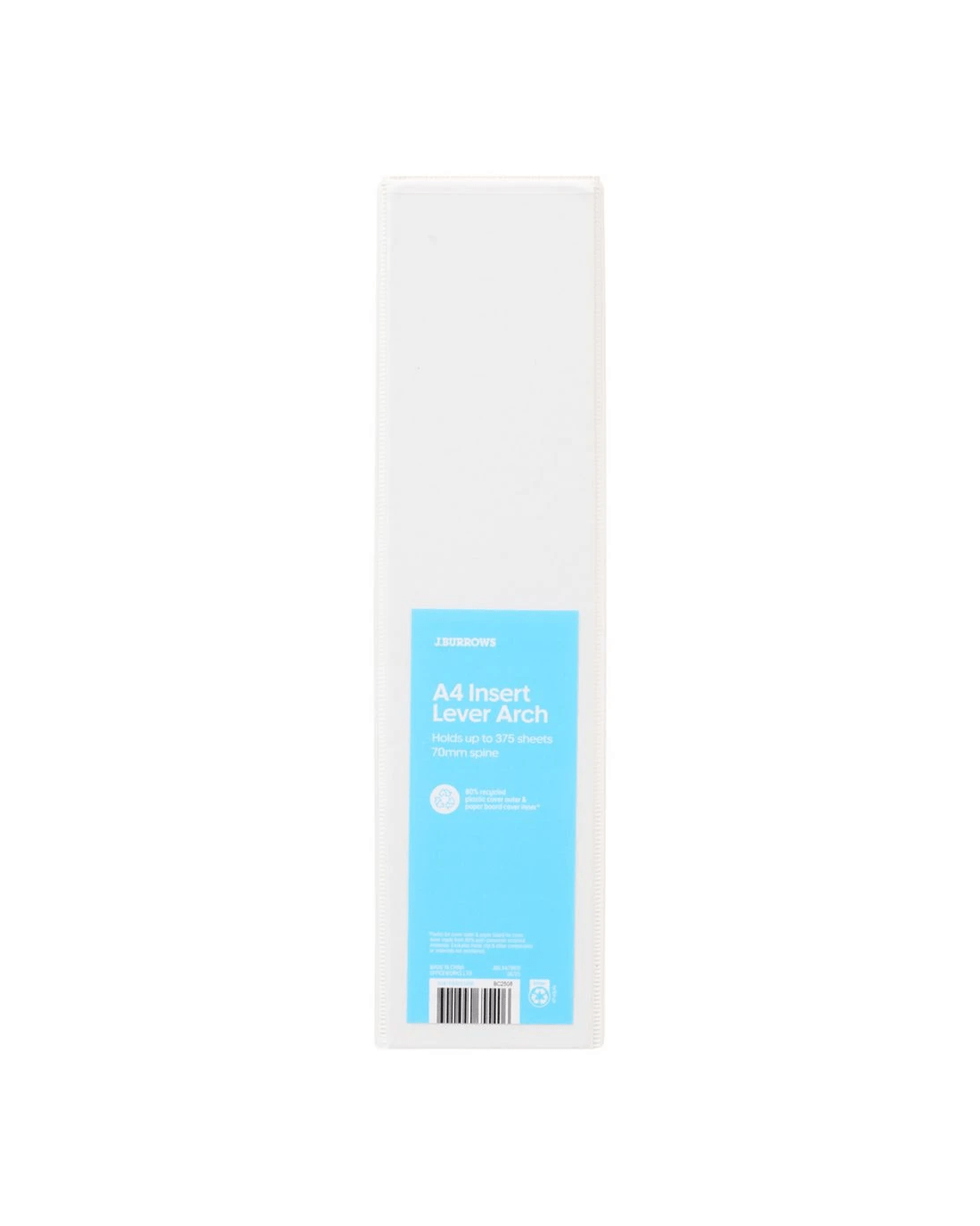 Keep important documents organised with the J.Burrows Insert Lever Arch Binder. It's designed to fit A4 sheets, and has a 70mm D-ring keeping your pages secure.