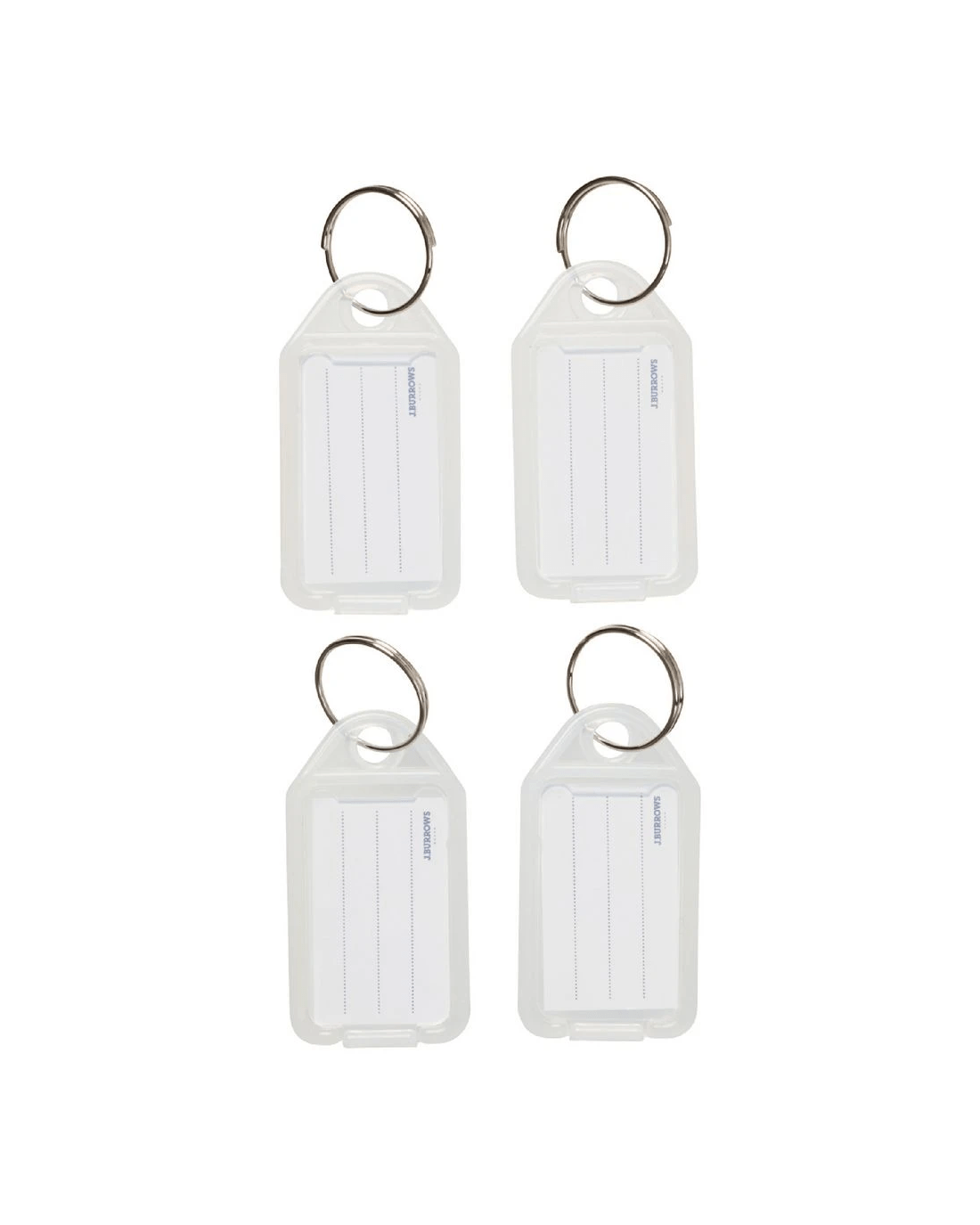 These J.Burrows Key Tags are ideal for keeping your keys identifiable and organised. They have pre-cut paper insert labels so you can quickly write down what they keys are for, to ensure you're not shuffling around finding the right key on your ring. The tags are made of a durable plastic.