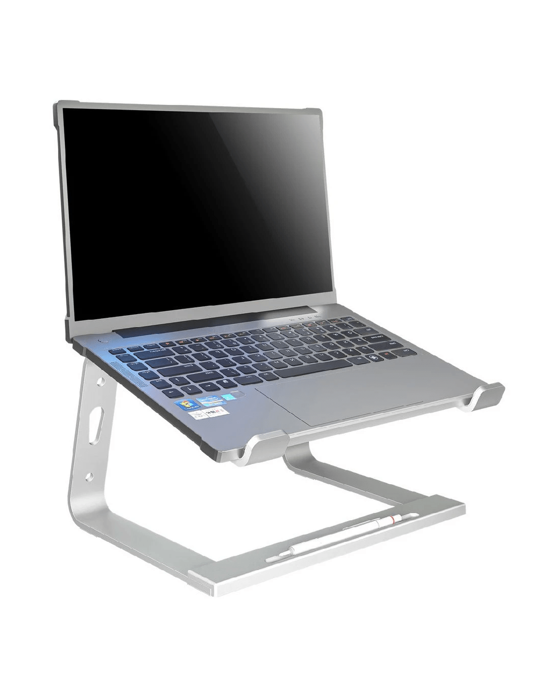 Elevate your workspace with this J.Burrows Laptop Stand. Suitable for laptops between 11"-17" in screen size, this stand allows you to enjoy an ergonomic work-from-home setup. It's suitable for table-top placement and comes in a sleek, silver design.