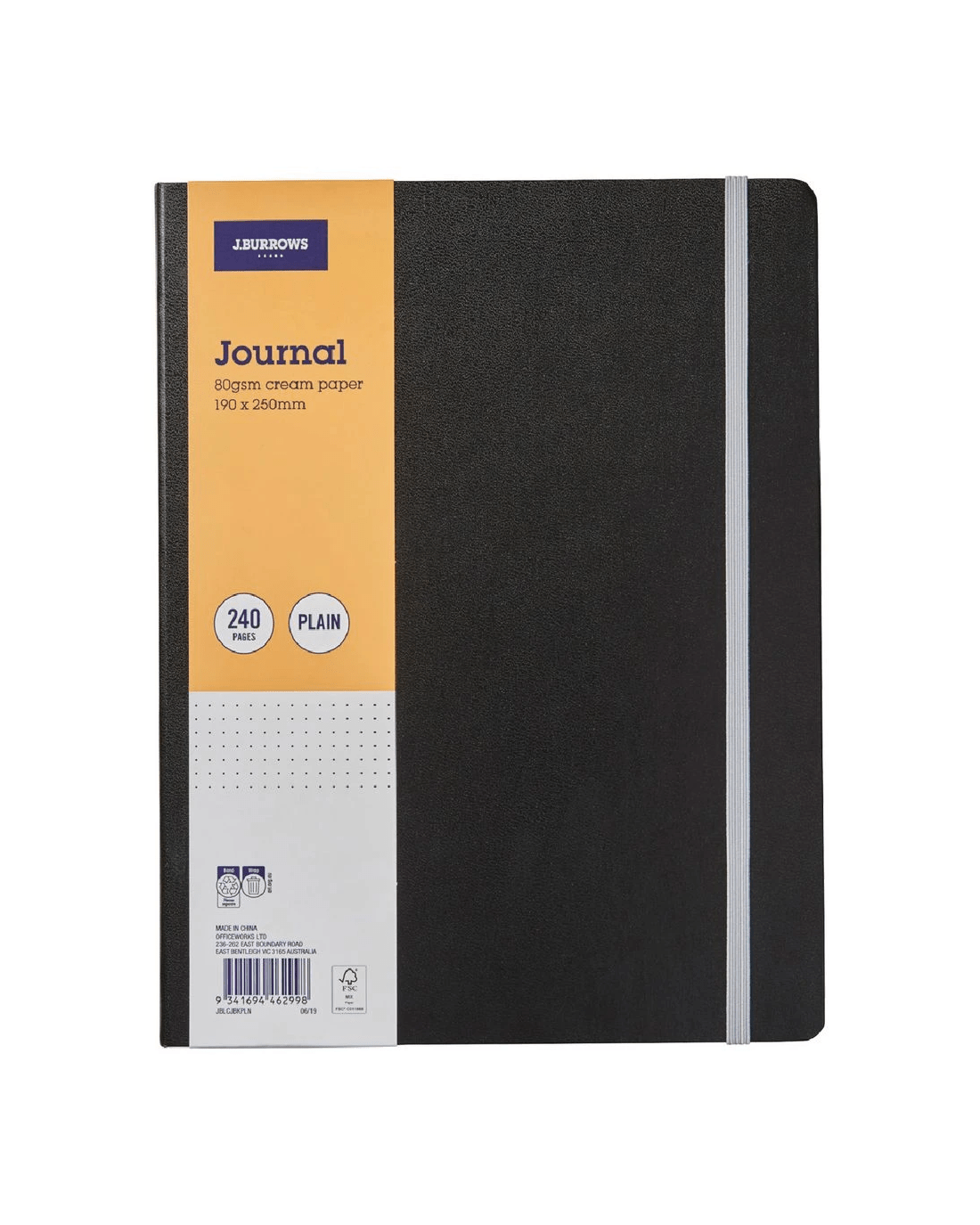 Sold by OfficeworksJ.Burrows Large Journal Plain 240 Page Black