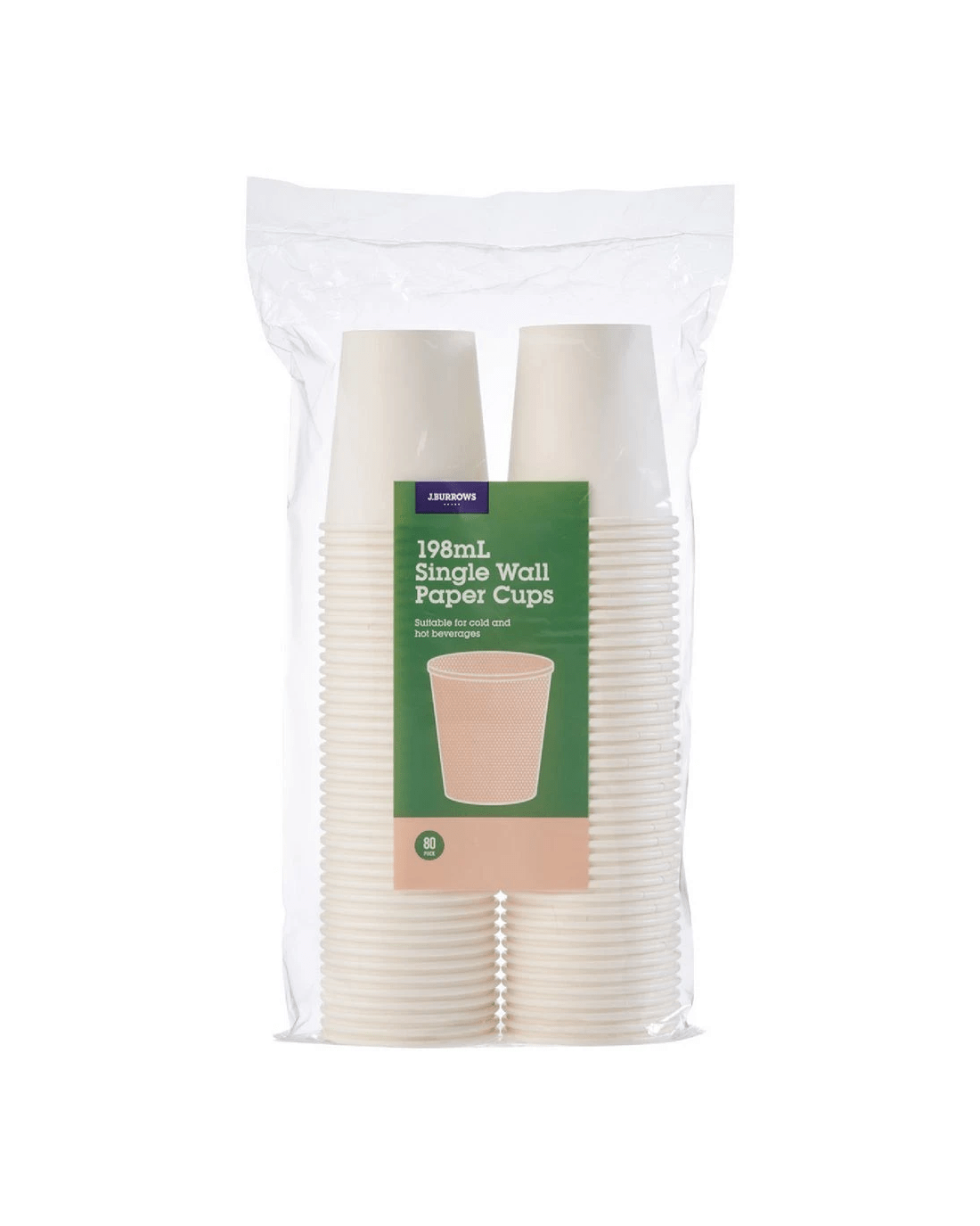 Sold by OfficeworksJ.Burrows Lined Single Wall Paper Cups 80 Pack 198mL