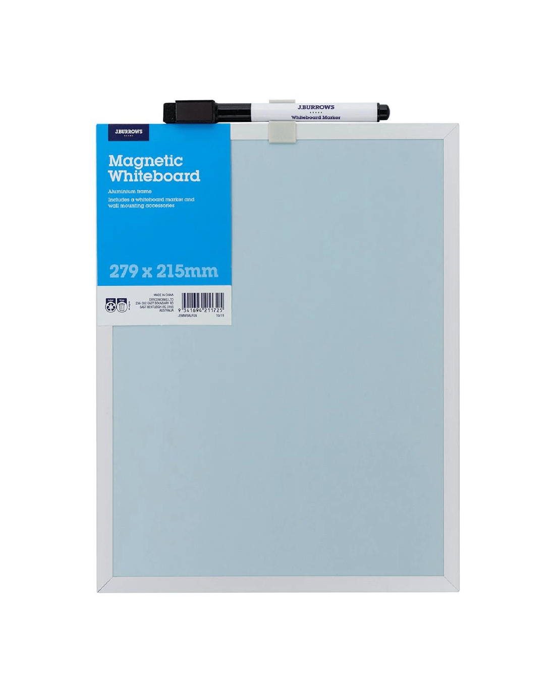 Sold by OfficeworksJ.Burrows Magnetic Aluminium Whiteboard 215 x 279mm Blue