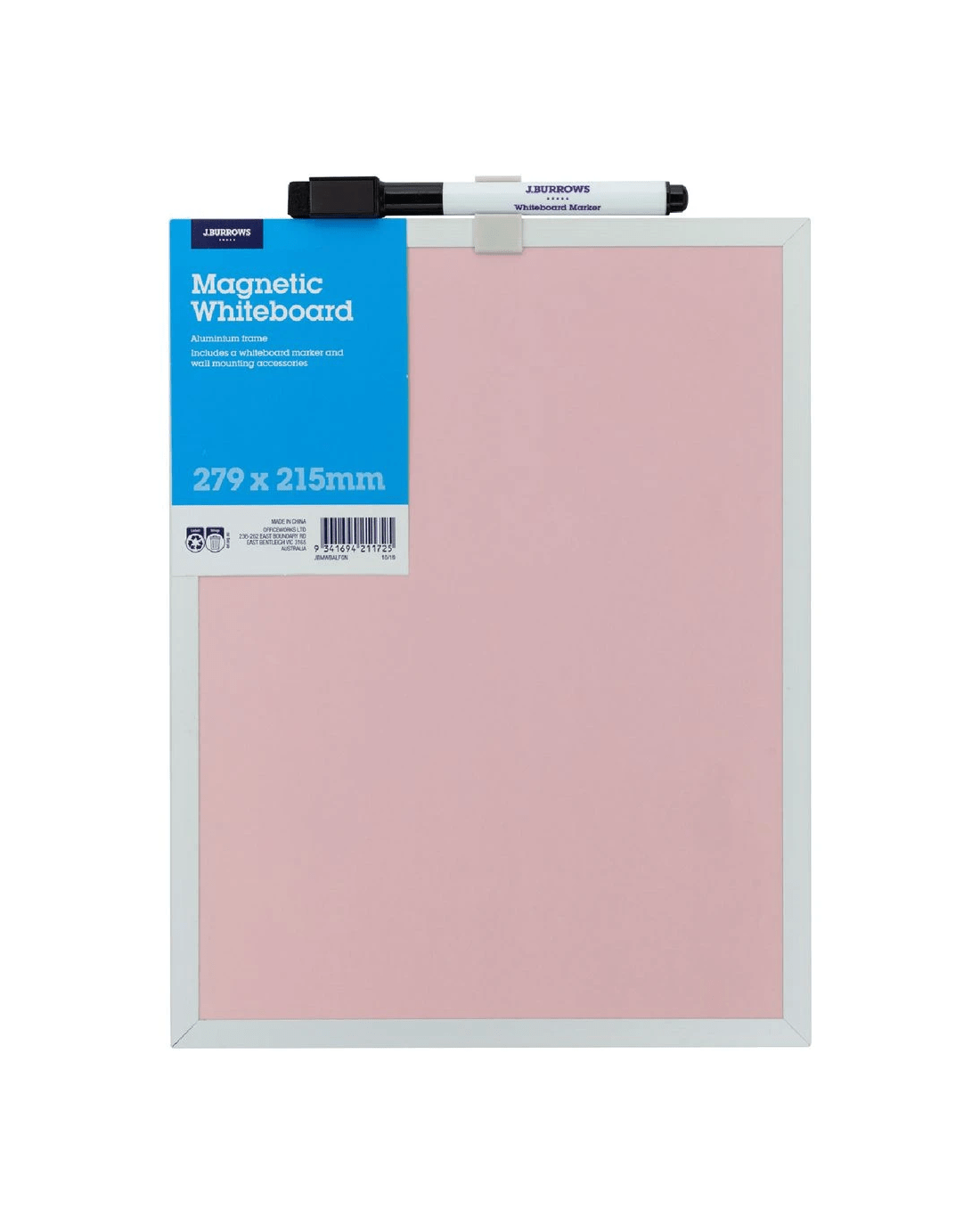 Sold by OfficeworksJ.Burrows Magnetic Aluminium Whiteboard 215 x 279mm Pink