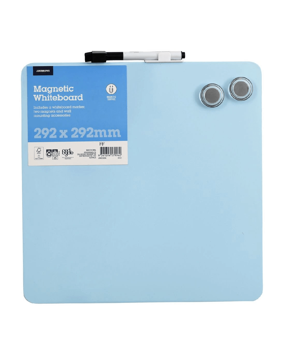 This J.Burrows Magnetic Whiteboard can be used for writing notes, memos, lists and more. It has a blue surface so you can coordinate your information by colour and can be mounted on a wall with the included fixings. Plus, with a designated holder for your markers, you'll be ready to jot down new ideas whenever inspiration strikes.