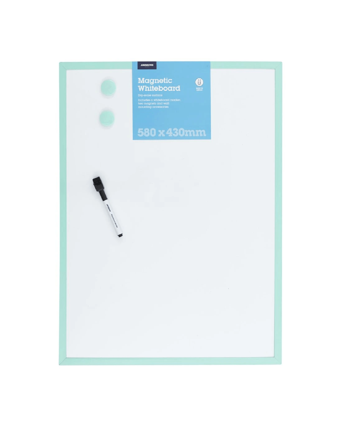 Sold by OfficeworksJ.Burrows Magnetic Whiteboard 430 x 580mm Green Frame