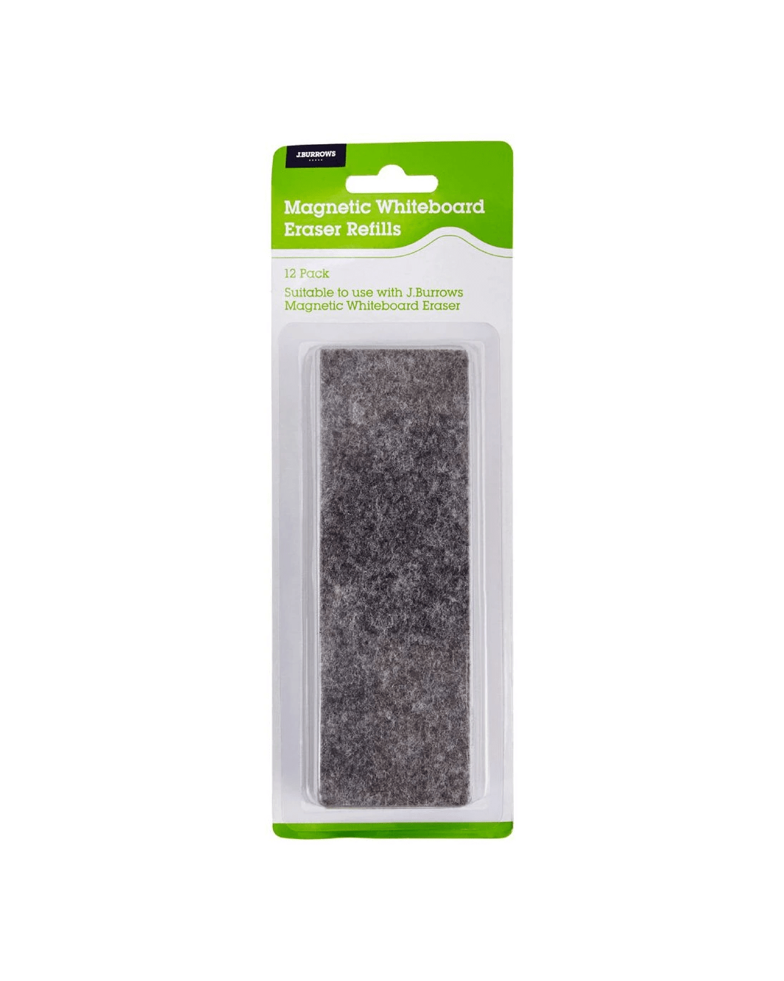 J.Burrows Magnetic Whiteboard Eraser Refills 12 Pack