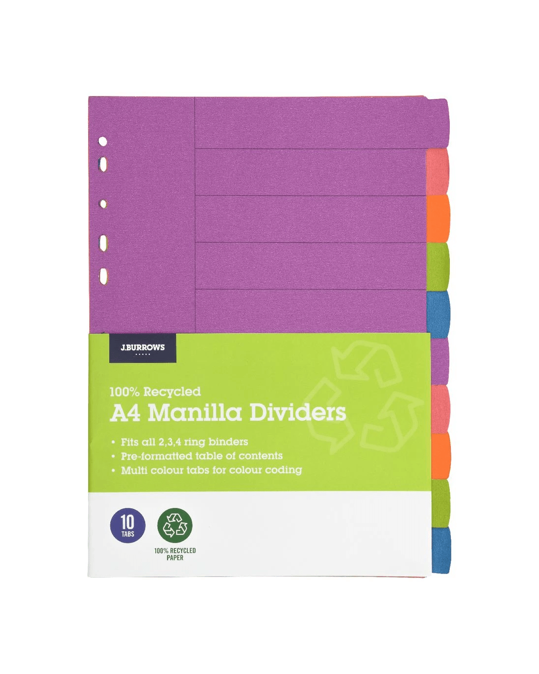 These bright and colourful J.Burrows Manilla Dividers are perfect for brightening up your every day filing. The dividers are perfect for use in your binder, folder or files to separate and organise your important papers and documents.