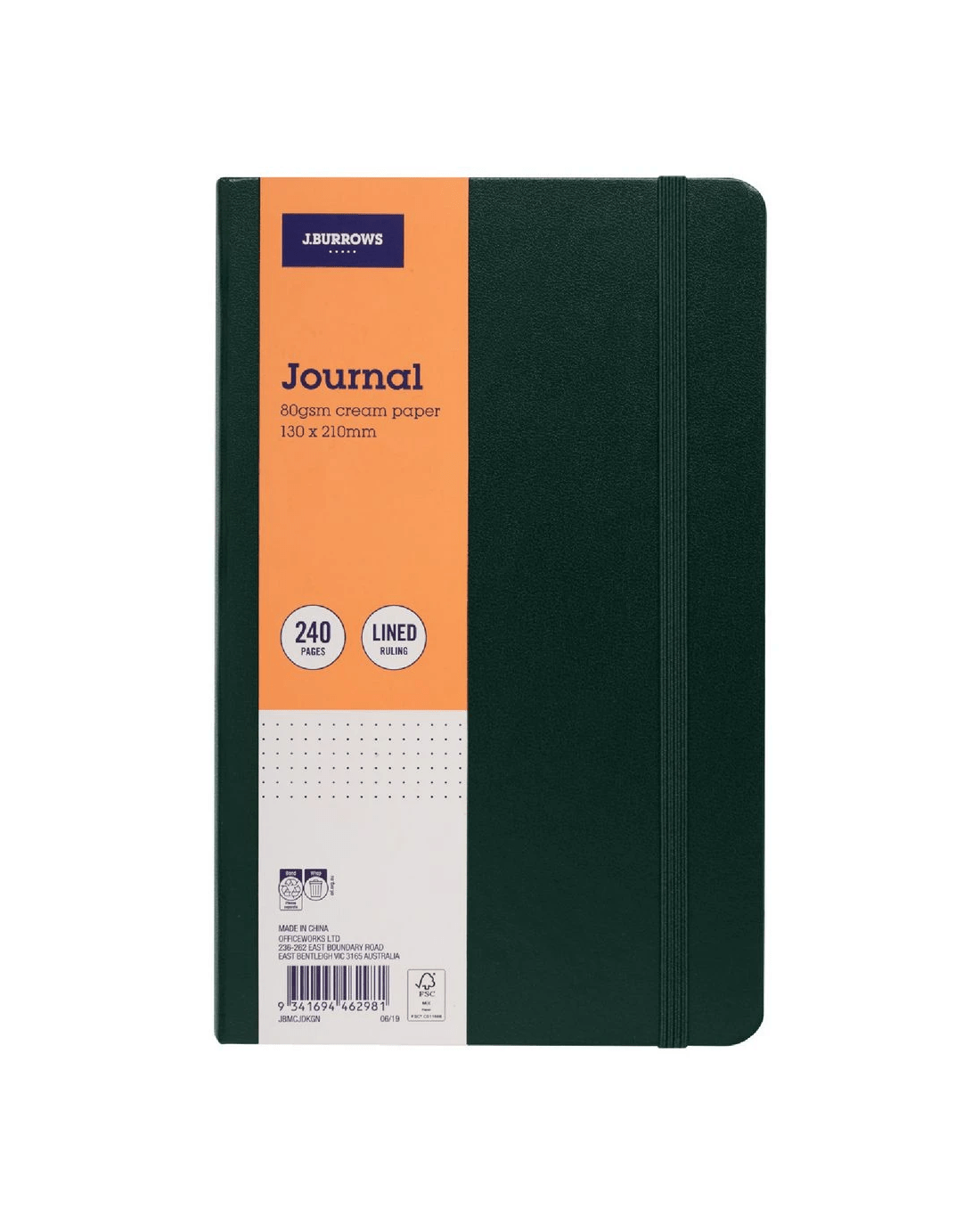 Sold by OfficeworksJ.Burrows Medium Journal Ruled 240 Page Dark Green