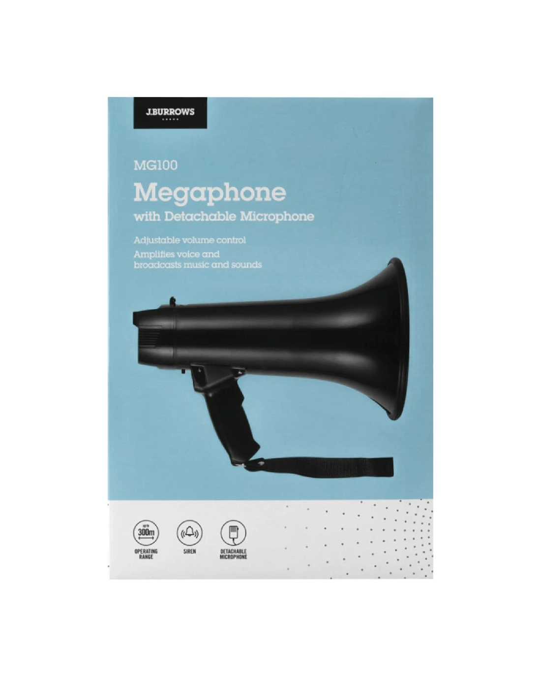 Be heard loud and clear with the J.Burrows Megaphone. This megaphone is professional level, featuring a large bell transistor for projection. It also has a detachable microphone.