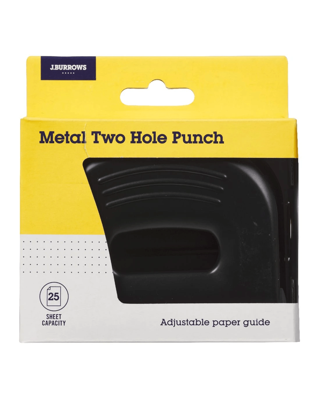 This J.Burrows Metal 2 Hole Punch is perfect for keeping handy so you can punch your papers and documents for filing into binders or lever arch folders. The punch has a durable metal construction to be long lasting.