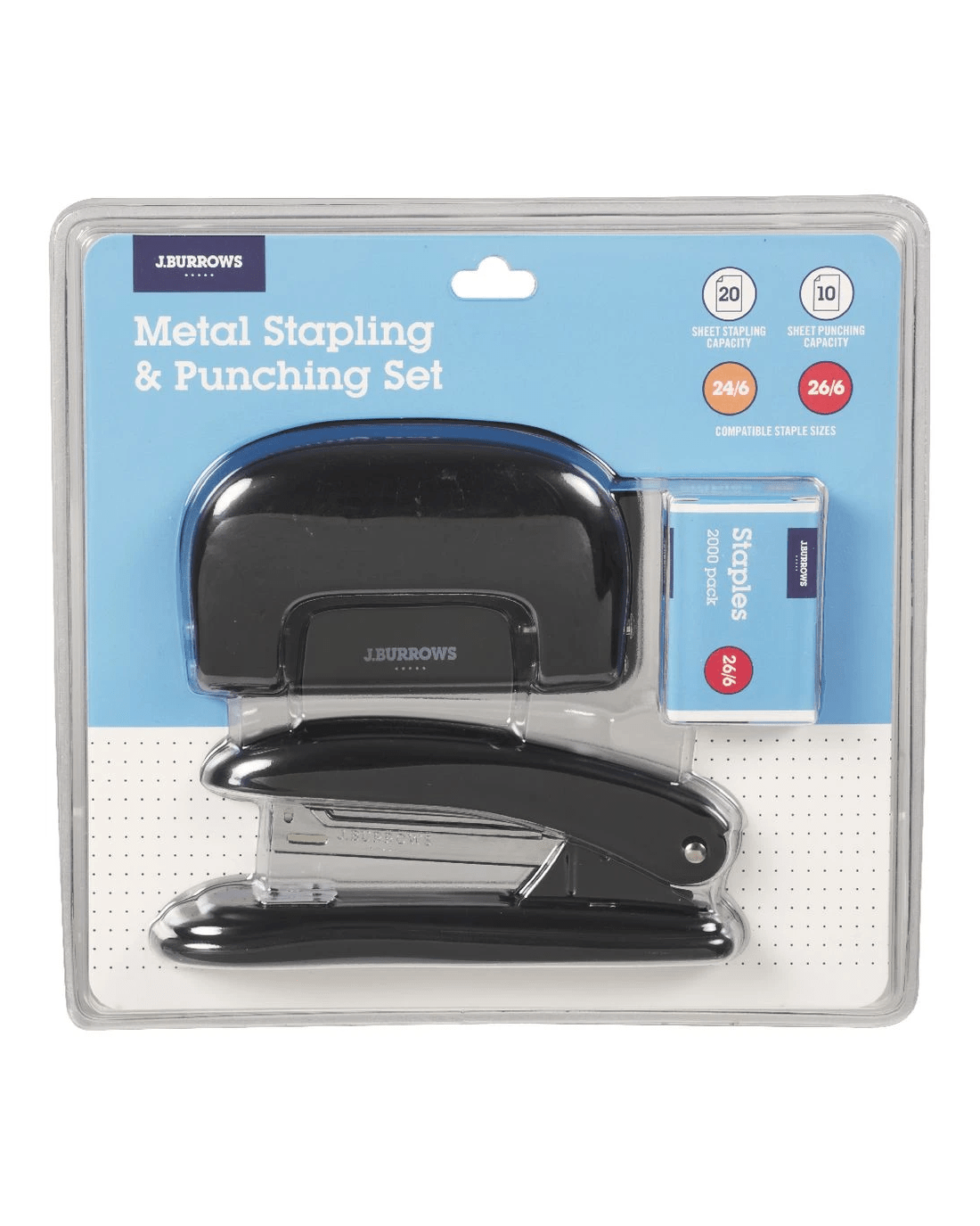J.Burrows Metal Stapler/Hole Punch Value Pack Black