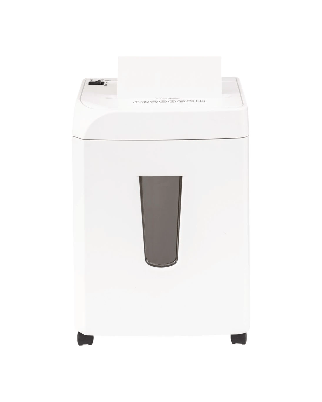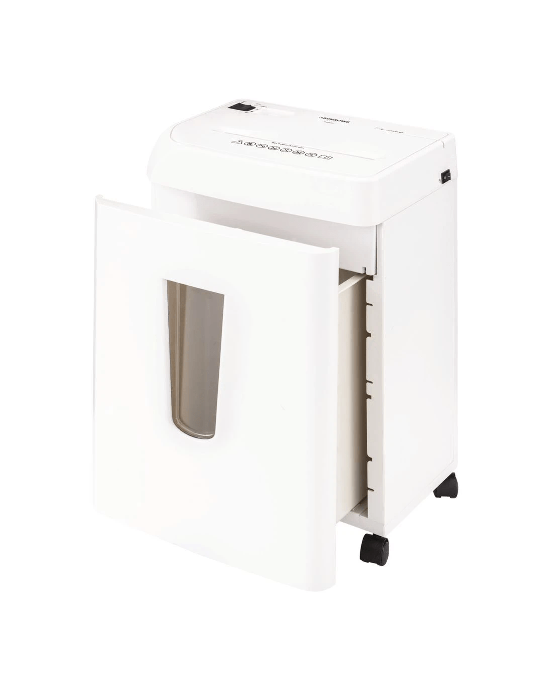 - The convenient detachable castor wheels allow you to move and position the shredder.